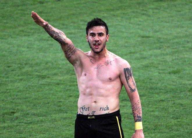 Ήταν Μάρτιος του 2013 όταν ο εν λόγω παίχτης, ο οποίος τότε έπαιζε στην ΑΕΚ, μετά την επίτευξη του γκολ που έδωσε τη νίκη στην ομάδα του σε ματς με τη Βέροια, χαιρέτισε ναζιστικά.
