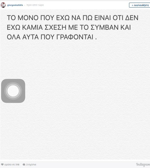 Πιο συγκεκριμένα ο Έλληνας παίχτης, μέσω Instagram, αρνήθηκε την οποιαδήποτε ανάμειξη στο συμβάν και διέψευσε το όλο σκηνικό που προκάλεσε σάλο και τον ήθελε να αναζητείται από τις Αρχές.