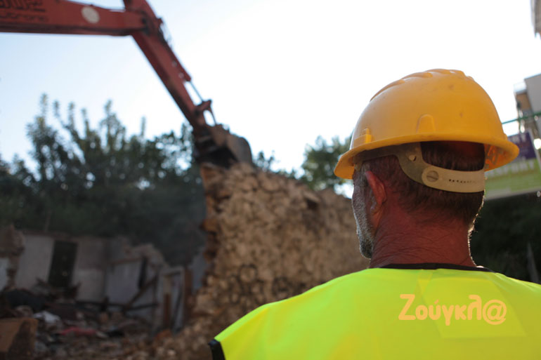Από νωρίς το πρωί ξεκίνησαν οι εργασίες κατεδάφισης εγκαταλελειμένου κτιρίου, στη συμβολή των οδών Μυλοποτάμου και Στρατηγού Δαβάκη στους Αμπελοκήπους.