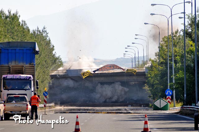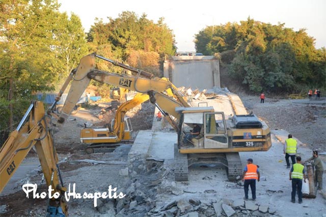 Κατεδαφίστηκε σήμερα στις 16.00 το απόγευμα η γέφυρα του Αιγινίου. Η εθνική οδός έκλεισε προκειμένου να μην υπάρξει κάποιο ατύχημα και για να απομακρυνθούν όλα τα υλικά από την κατεδάφιση.