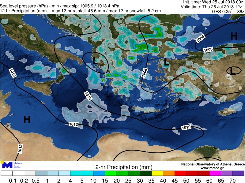 Μάλιστα, το διήμερο Πέμπτη 26/07 και Παρασκευή 27/07, τα φαινόμενα θα έχουν μεγαλύτερη ένταση και διάρκεια, και θα επηρεάσουν κατά τόπους και νησιωτικά τμήματα του Ιονίου και του Αιγαίου (κυρίως Σποράδες, νησιά ΒΑ Αιγαίου και Κυκλάδες). Βροχές ή καταιγίδες θα εκδηλωθούν και σε ορεινά κυρίως τμήματα της Κρήτης.