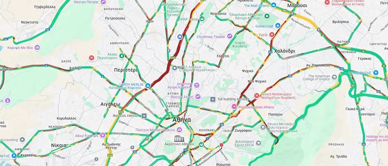 «Κόκκινος» είναι ο Κηφισός στο ρεύμα προς Λαμία ενώ μποτιλιάρισμα σημειώνεται και στους δρόμους του κέντρου της Αθήνας.