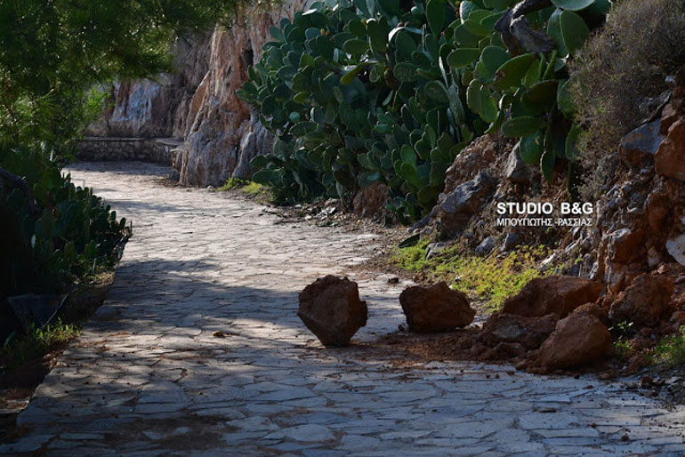 Βράχια αποκολλήθηκαν, περίπου στο μέσο της περιπατητικής διαδρομής και ουσιαστικά έκοψαν τον τον πεζόδρομο στα δύο. Τον Ιούνιο του 2018 είχε σημειωθεί και πάλι μεγάλη κατολίσθηση.