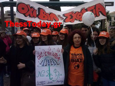 Μαθητές σχολείων από την Καβάλα, συγκεντρώθηκαν το πρωί της Τετάρτης, στην κεντρική πλατεία της πόλης και σχημάτισαν μια ανθρώπινη αλυσίδα, για να πουν όχι στη βία στα σχολεία και στον εκφοβισμό.