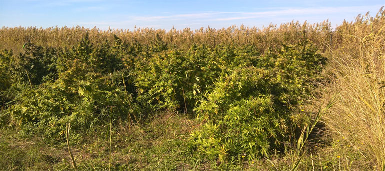 100 κιλά ακατέργαστης κάνναβης, η οποία ήταν τοποθετημένη σε αυτοσχέδιες κατασκευές κατάλληλες για την αποξήρανση, 80 καλλιεργούμενα δενδρύλλια κάνναβης, ύψους περίπου 1,8 μέτρων, 1 εκριζωμένο δενδρύλλιο κάνναβης, 1 συσκευή επεξεργασίας κάνναβης, η οποία περιείχε 950 γραμμάρια κατεργασμένης κάνναβης στο στάδιο της παρασκευής, διάφορα μηχανήματα, εξαρτήματα και εργαλεία για την περιποίηση της φυτείας.