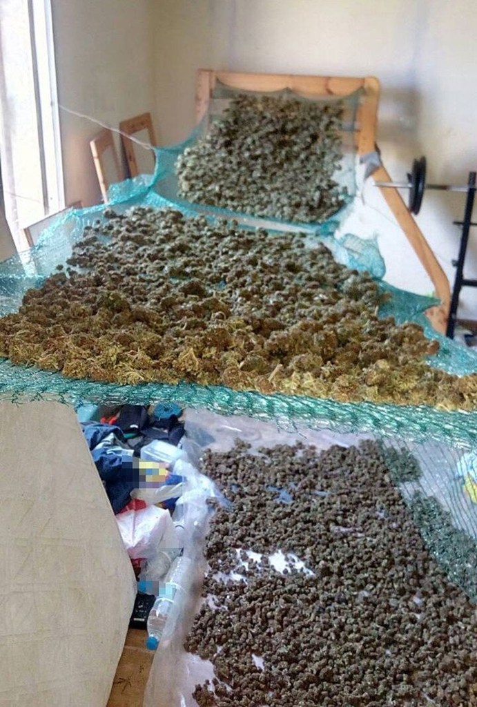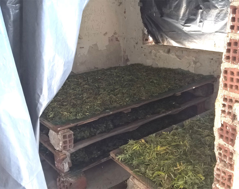 Από την ενδελεχή έρευνα που ακολούθησε στο εσωτερικό του κτιρίου, διαπιστώθηκε ότι οι δράστες είχαν διαμορφώσει και εξοπλίσει κατάλληλα τους χώρους του, για την αποξήρανση της κάνναβης και την μετέπειτα επεξεργασία της.