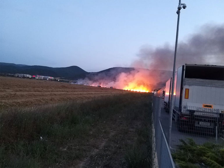 Πυρκαγιά ξέσπασε το βράδυ του Σαββάτου σε ξερά χόρτα σε χωράφι κοντά στις αποθήκες του Μασούτη, στο Καβαλλάρι Θεσσαλονίκης.