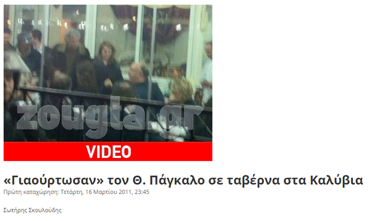Τότε ο Θεόδωρος Πάγκαλος είχε καταγγείλει δημόσια πως πίσω από την επίθεση που δέχθηκε με γιαούρτια βρίσκεται ο πρώην δήμαρχος Κερατέας, Σταύρος Ιατρού, με αποτέλεσμα ο δεύτερος να προβεί σε αγωγή εναντίον του πολιτικού.