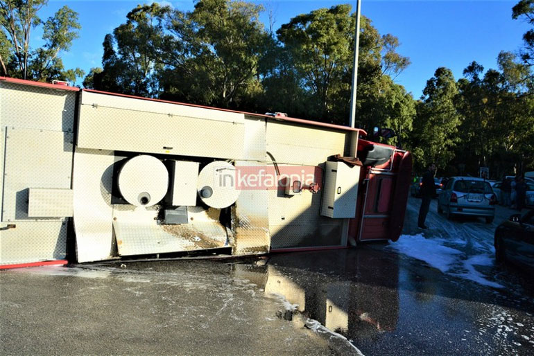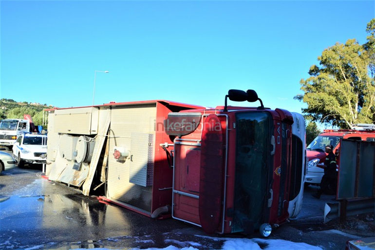 Στις 08.00 το πρωί της Πέμπτης σημειώθηκε ανατροπή πυροσβεστικού οχήματος σε κόμβο στο Αργοστόλι.