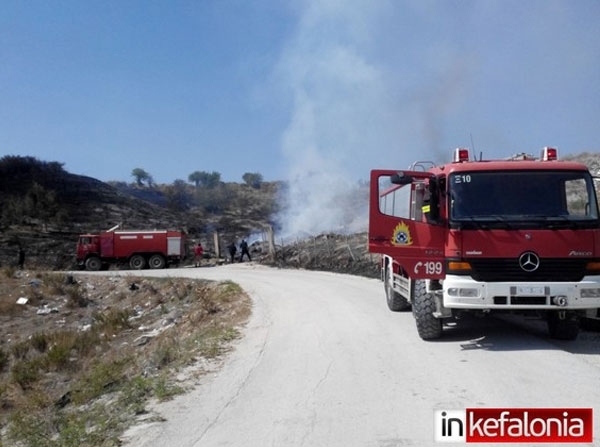 Φωτιά εκδηλώθηκε, από άγνωστη μέχρι στιγμής αιτία, σε είσοδο οικοπέδου που χρησιμοποιείται ως χωματερή στην περιοχή Λαγκάδα Παλικής λίγο μετά τη μία το μεσημέρι του Σαββάτου.