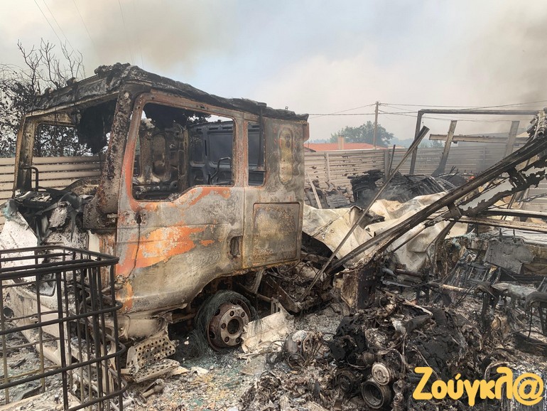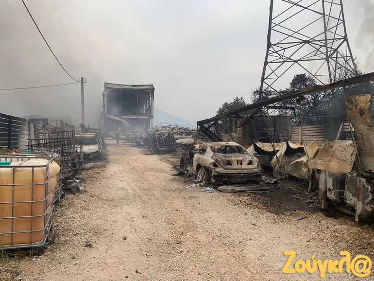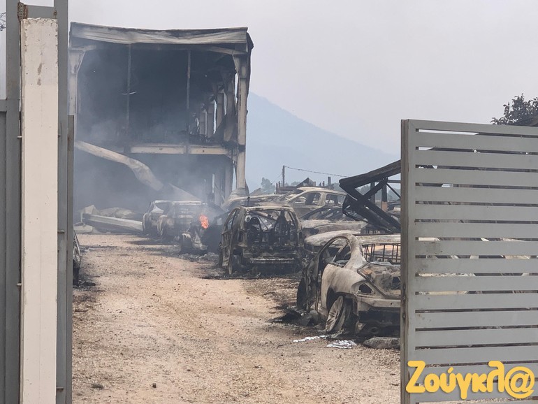 Στις φλόγες τυλίχτηκε και μία αντιπροσωπεία συλλεκτικών αυτοκινήτων η οποία καταστράφηκε ολοσχερώς στο ύψος του Κοκκινόβραχου στις Αφίδνες. Μόνο οι λαμαρίνες έμειναν από τα δεκάδες αυτοκίνητα που ήταν ακινητοποιημένα στην είσοδο της αντιπροσωπείας από την οποία τίποτα δεν έμεινε όρθιο.