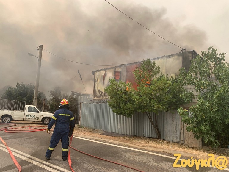 Δείτε τη μετάδοση του zougla.gr με μία επιχείρηση που παραδίδεται στις φλόγες στις Αφίδνες