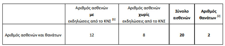 Έχουν καταγραφεί δύο (2) θάνατοι ασθενών με λοίμωξη από τον ιό και εκδηλώσεις από το ΚΝΣ (ηλικίας >75 ετών).