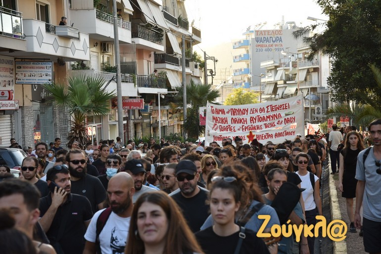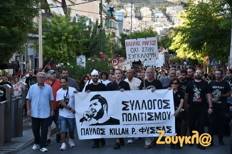 Με κεντρικό σύνθημα « Ο Παύλος ζει τσακίστε τους ναζί» οι διαδηλωτές και οι διαδηλώτριες συγκεντρώθηκαν αρχικά στην οδό Παύλου Φύσσα, στο μνημείο όπου δολοφονήθηκε και αυτή την ώρα πραγματοποιούν πορεία με κατεύθυνση το μπλόκο της Κοκκινιάς. Στην κεφαλή της πορείας βρίσκονται οι γονείς του Παύλου Φύσσα, Μάγδα και Παναγιώτης, ο πατέρας του Βασίλη Μάγγου, Γιάννης, καθώς επίσης και συγγενείς και φίλοι.