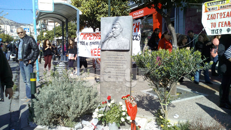 Το μεσημέρι σε μια σεμνή τελετή, παρουσία φίλων και συγγενών του θύματος, έγινε η αλλαγή στις ταμπέλες. Στο σημείο στήθηκε εξέδρα και ακούστηκαν τραγούδια που αρμόζουν στη μνήμη του…