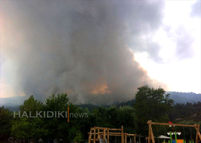 Το μέτωπο της φωτιάς ξενικά πάνω από τον Αρμενιστή σε δασική έκταση και απλώνονται 1,5 χιλιόμετρο νοτιοδυτικά της χερσονήσου της Σιθωνίας.