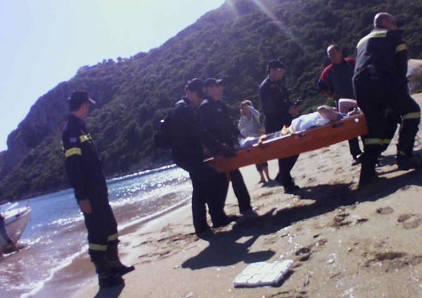 Ο τραυματίας μεταφέρθηκε με ειδικό φορείο σε πλωτό ιδιωτικό σκάφος και στη συνέχεια οδηγήθηκε στην παραλία του Αγίου Γεωργίου Πάγων, όπου τον παρέλαβε ασθενοφόρο του ΕΚΑΒ.