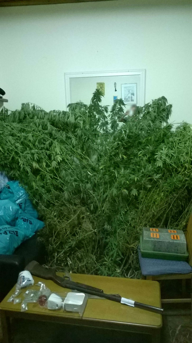Επίσης, στο πλαίσιο των ερευνών βρέθηκαν σε αποθήκη και κατασχέθηκαν ακατέργαστη κάνναβη βάρους 124,8 γραμμαρίων, κατεργασμένη κάνναβη βάρους 3,6 γραμμαρίων καθώς και ένα κυνηγετικό όπλο χωρίς άδεια.