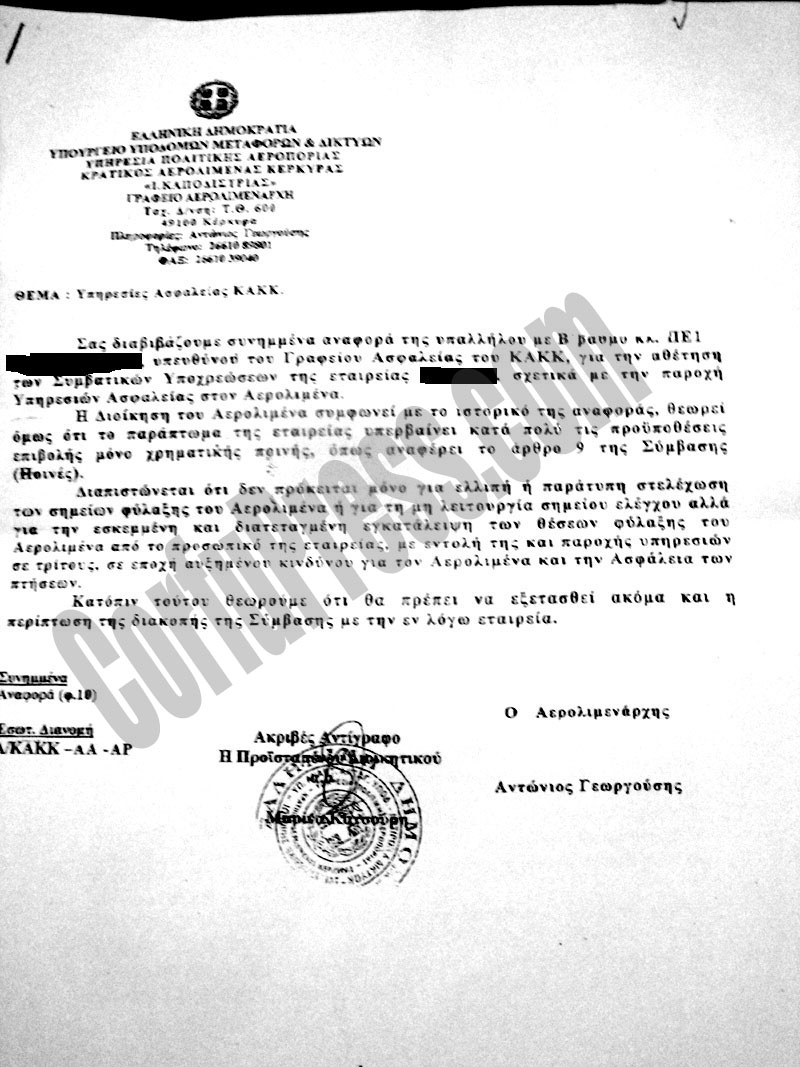 • Χρησιμοποιήθηκαν 29 υπάλληλοι κατ΄ επανάληψη οι οποίοι πληρώνονταν από την ΥΠΑ για να απασχολούνται αποκλειστικά για τη φύλαξη του αεροδρομίου Κέρκυρας