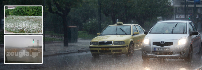 Σε όλη την επικράτεια παρατηρούνται επικίνδυνα καιρικά φαινόμενα που συνοδεύονται από χαλαζοπτώσεις και ενισχυμένους ανέμους, με αποτέλεσμα να δημιουργηθούν μεταξύ άλλων προβλήματα στην κυκλοφορία των οχημάτων. Στην Αττική σε ποτάμια μετατράπηκαν μέσα σε λίγα λεπτά κεντρικοί δρόμοι των βορείων προαστίων αλλά και του Πειραιά.