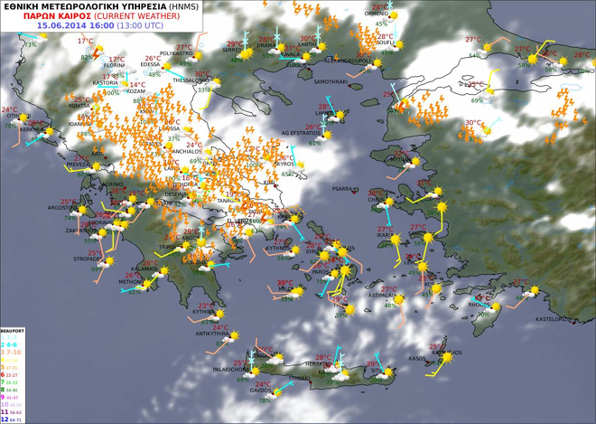 Θερμοκρασία: Από 19 έως 29 βαθμούς Κελσίου. Στην Κρήτη η μέγιστη θα είναι κατά τόπους 2 με 4 βαθμούς υψηλότερη.