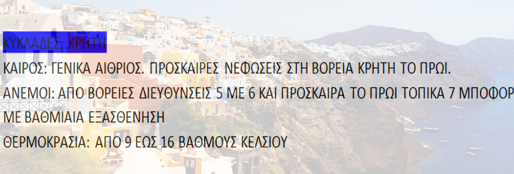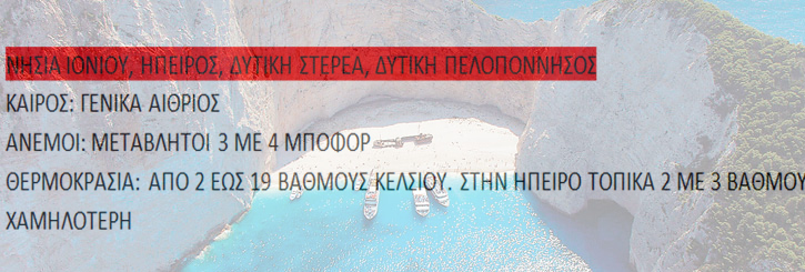 Επισκεφτείτε την κατηγορία καιρός του zougla.gr για τις προγνώσεις ανά περιοχή