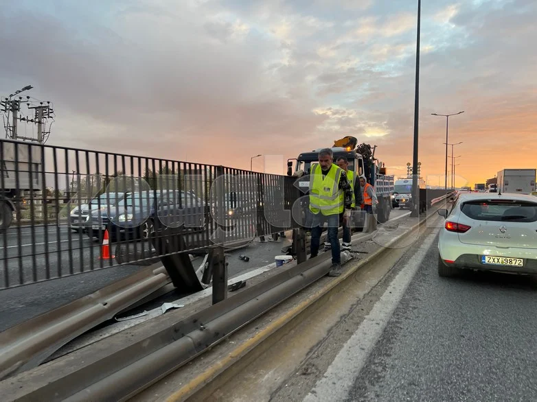 Από τη σφοδρή σύγκρουση, οι μπάρες ξηλώθηκαν και κομμάτια τους πέρασαν στο αντίθετο ρεύμα, προκαλώντας ζημιές και προσωρινό κλείσιμο της αριστερής λωρίδας κυκλοφορίας προς Λαμία.