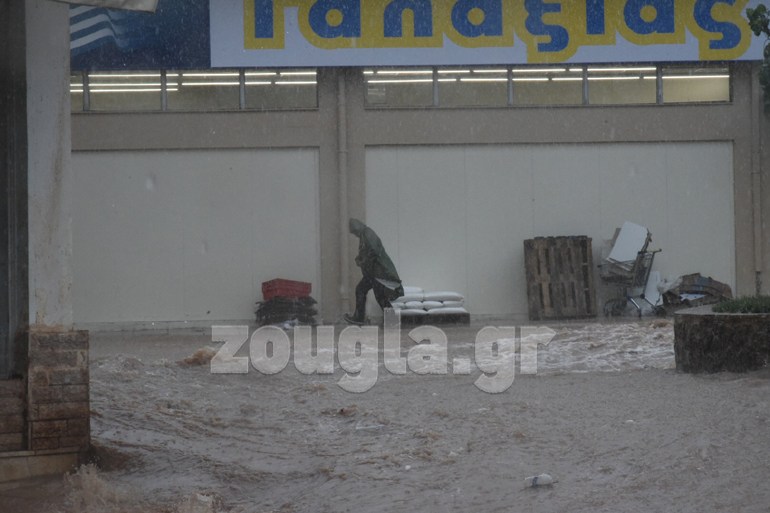 Στη Μαγούλα συγκεκριμένα, λίγο μετά τις 17:30 έκλεισε από τη μεγάλη ποσότητα ύδατος και τη λάσπη η κεντρική οδός Αθανασίου Διάκου, ενώ στην περιοχή πλημμύρισαν και κατοικίες.