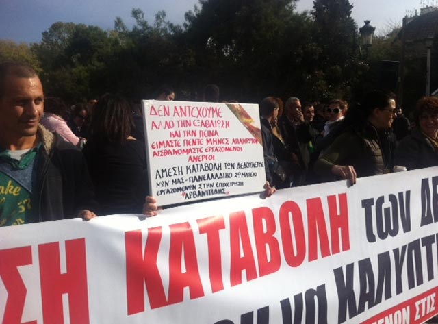 Στο μεταξύ, σταδιακά έκλεισαν οι δρόμοι στο κέντρο της πόλης εξαιτίας των τριών προγραμματισμένων απεργιακών συγκεντρώσεων. Η πρώτη ξεκίνησε στις 10.30 μπροστά από το Εργατοϋπαλληλικό Κέντρο Θεσσαλονίκης. Στη συγκέντρωση συμμετέχουν και εργαζόμενοι του ψυχιατρικού νοσοκομείου Θεσσαλονίκης, όπως και εκπαιδευτικοί.