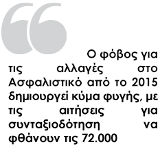 Οι ενοποιήσεις ταμείων, το «ψαλίδι» στο επικουρικό και ο νέος τρόπος υπολογισμού των συντάξεων είναι ορισμένες μόνο από τις αλλαγές που προωθεί το Υπουργείο Εργασίας, προκαλώντας κύμα φυγής περίπου 30.000 ασφαλισμένων μόνο στον χώρο της Δημόσιας Διοίκησης. Την ίδια στιγμή στα υπόλοιπα Ταμεία του ευρύτερου δημόσιου και ιδιωτικού τομέα οι αιτήσεις συνταξιοδότησης αναμένεται να φθάσουν τις 72.000.