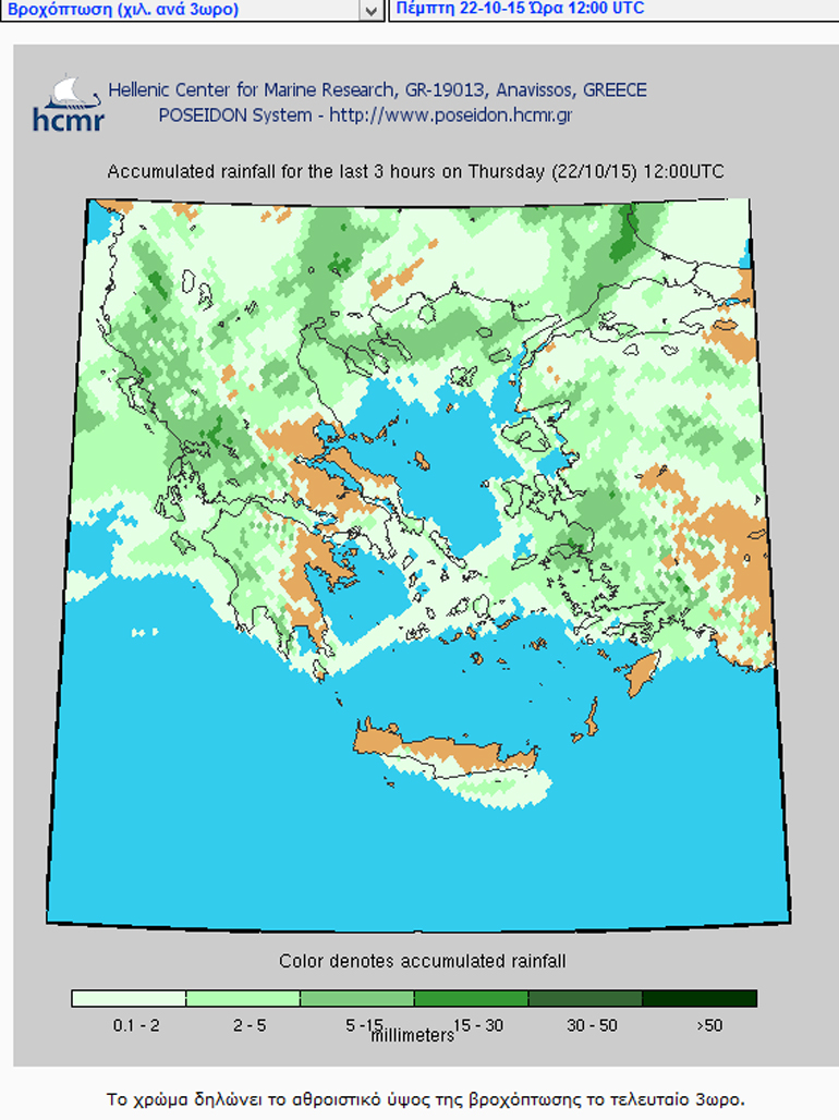 Βροχές και καταιγίδες προβλέπονται για την Τετάρτη (21-10-2015) στο μεγαλύτερο μέρος της χώρας οι οποίες θα είναι καταιγίδες περιόδους τοπικά ισχυρές αρχικά στη δυτικη Ελλάδα και βαθμιαία μέχρι το τέλος της ημέρας και στις υπόλοιπες περιοχές.