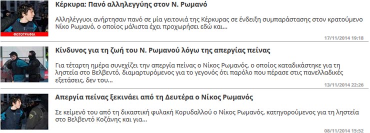 Κείμενο του μέλους του Επαναστατικού Αγώνα Νίκου Μαζιώτη αναρτήθηκε στο διαδίκτυο, μέσω του οποίου συμπαραστέκεται στον απεργό πείνας Νίκο Ρωμανό.