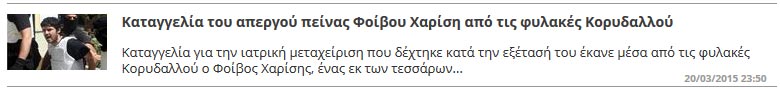 Καταγγέλλουμε το γεγονός ότι, σε τρεις από τις τέσσερις περιπτώσεις μεταγωγών τους σε νοσοκομεία του ΕΣΥ, η άρνηση του απεργού πείνας να λάβει υγρά ενδοφλεβίως ερμηνεύθηκε ως άρνηση νοσηλείας και φροντίδας με αποτέλεσμα την επιστροφή τους στη φυλακή και την περαιτέρω ταλαιπωρία τους που θέτει σε μείζονα κίνδυνο την υγεία τους.