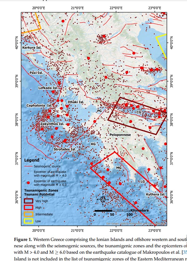 «(…) Διαπιστώθηκε ότι υπάρχει μεγάλος αριθμός προϊστορικών, ιστορικών και πρόσφατων γεγονότων τσουνάμι, που αποκαλύπτουν ότι τα νησιά του Ιονίου και οι νότιες ακτές της Πελοποννήσου υπόκεινται σε υψηλό κίνδυνο τσουνάμι. Εκτός από τις επιπτώσεις που προκαλούνται από καταστροφικά τσουνάμι που προκαλούνται από σεισμούς, (…) υπάρχουν και άλλα τοπικά τσουνάμι με αξιοσημείωτα αποτελέσματα, που προκαλούνται από σεισμούς εντός του Ιονίου. (…) Το γεγονός ότι δεν έχει σημειωθεί μέχρι στιγμής τέτοιο καταστροφικό γεγονός στο Ιόνιο, δεν σημαίνει ότι δεν μπορεί να συμβεί στο μέλλον. Αντίθετα, όπως έχει αποδειχθεί για άλλες περιοχές με οι σεισμογόνες και “τσουναμιγενείς” δομές σε όλο τον κόσμο, αυτό είναι πολύ πιθανό», εξηγούν.