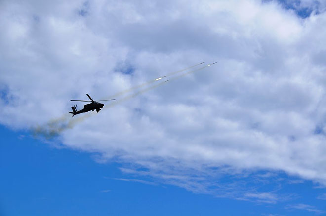 Ιδιαίτερα εντυπωσιακή ήταν, μάλιστα, η στιγμή που από τα ελληνικά ελικόπτερα Απάτσι εκτόξευσαν πυραύλους «Χελφάιρ» κατά των στόχων.