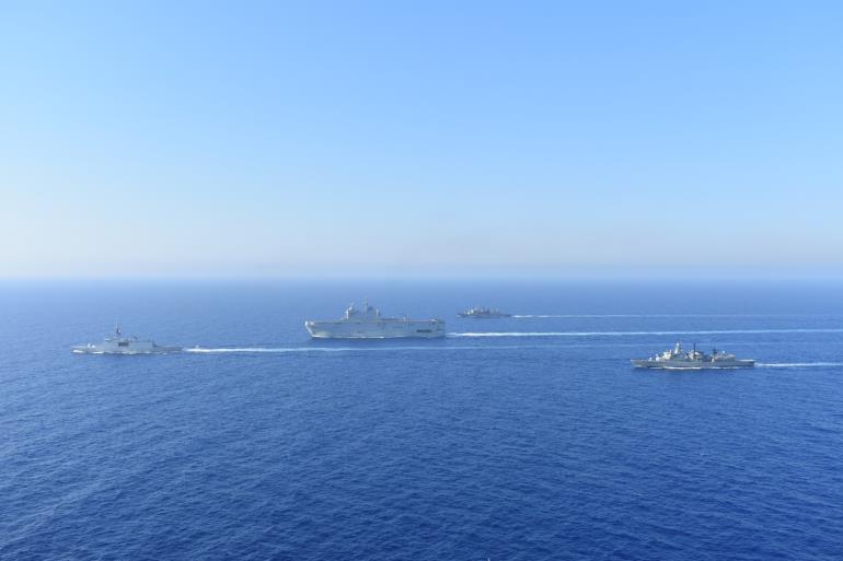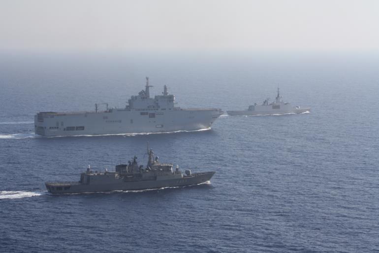 Στην άσκηση συμμετείχαν οι Φρεγάτες «ΣΠΕΤΣΑΙ», «ΑΙΓΑΙΟΝ», «ΛΗΜΝΟΣ», «ΚΟΥΝΤΟΥΡΙΩΤΗΣ» και γαλλική ομάδα πλοίων (Task Force) αποτελούμενη από το γαλλικό Ελικοπτεροφόρο FS «TONNERRE» και τη Φρεγάτα FS «LA FAYETTE», γνωστή από παλαιότερες επιχειρήσεις στην περιοχή.
