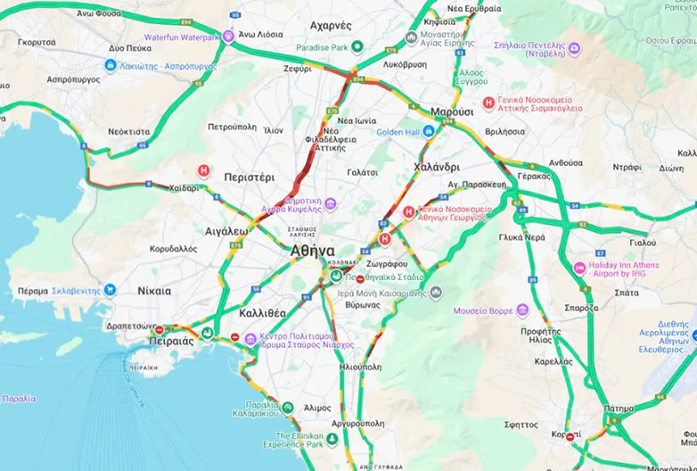 Συγκεκριμένα, στη λεωφόρο Κηφισού, οι οδηγοί κινούνται με σχετικά χαμηλές ταχύτητες καθώς παρατηρείται κυκλοφοριακή συμφόρηση κυρίως από τη Νέα Φιλαδέλφεια έως και τη Δράκοντος και στα δυο ρεύματα.
