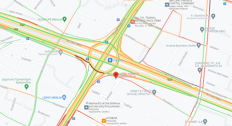- Στην κάθοδο Κηφισίας, από την Αττική Οδό προς Ψυχικό από κόμβο Κηφισίας