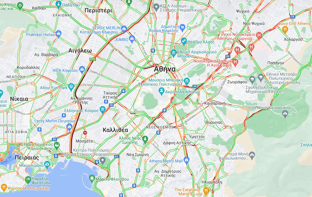 Μποτιλιάρισμα σημειώνεται επίσης αυτήν την στιγμή στη Λεωφόρο Κηφισίας, στην Ποσειδώνος, στο λιμάνι του Πειραιά και στο κέντρο της Αθήνας.