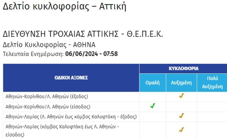 άνω των 30΄ από Φυλής έως Κηφισίας. https://t.co/AM7CMnU77T— Attiki Odos Traffic (@aodostraffic) June 6, 2024