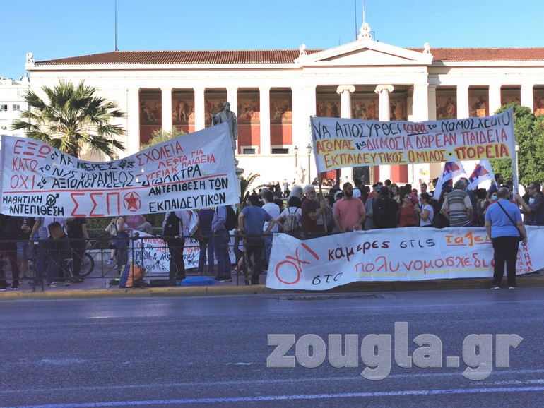Με κεντρικό σύνθημα «οι εκπαιδευτικοί έχουν φωνή, αυτό το νομοσχέδιο θα ανατραπεί», οι εκπαιδευτικοί ζητούν μεταξύ άλλων, την απόσυρση του νομοσχεδίου ενώ χαρακτηρίζουν «τροπολογία – ντροπή» την τροπολογία για την ζωντανή αναμετάδοση των μαθημάτων με κάμερες στα σχολεία και ζητούν την κατάργησή της.