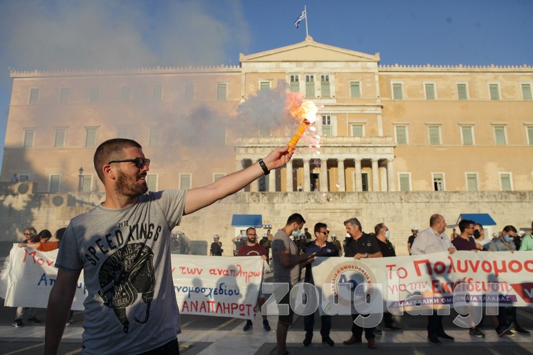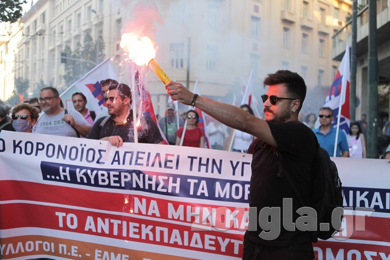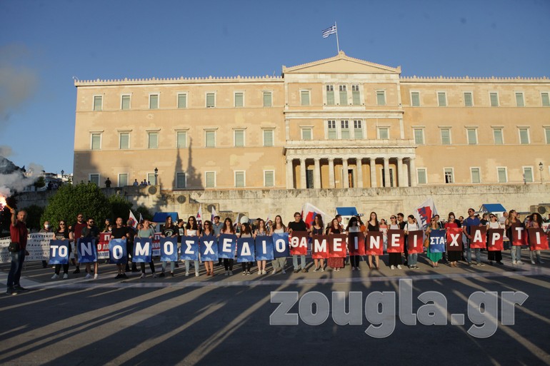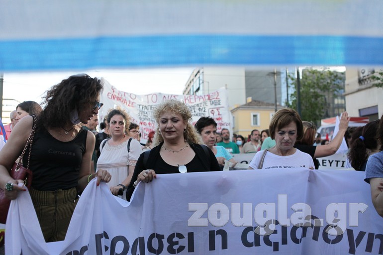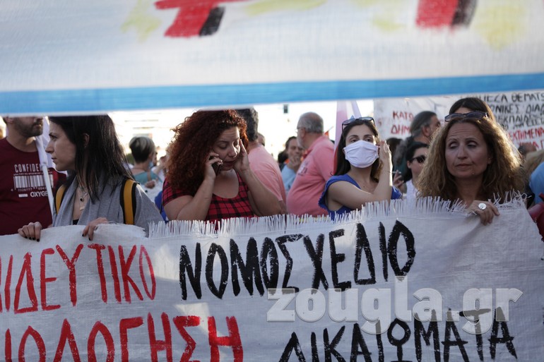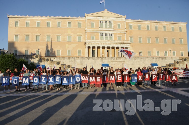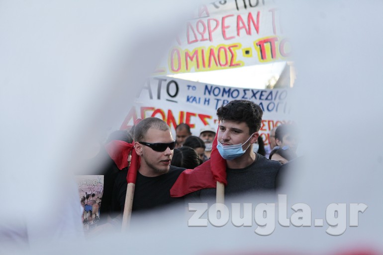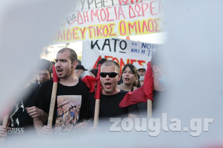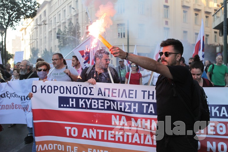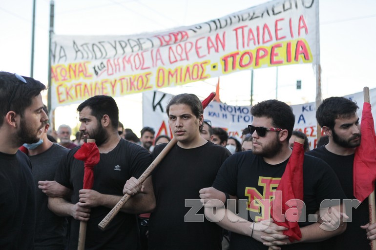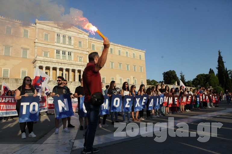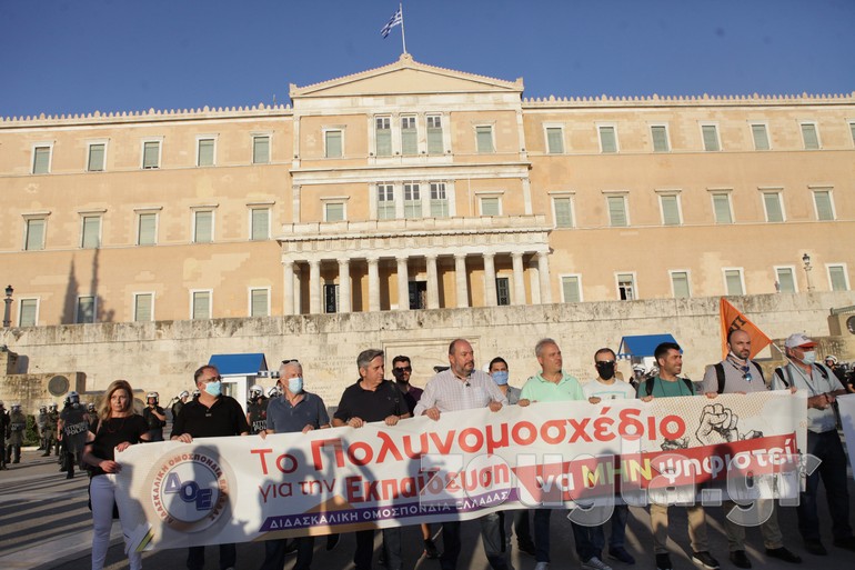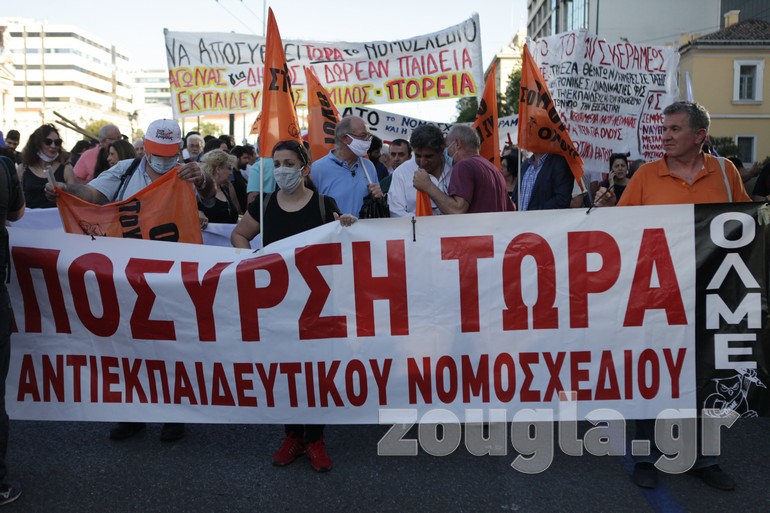 Συγκέντρωση στα Προπύλαια και πορεία προς το Σύνταγμα πραγματοποίησαν την Τετάρτη οι εκπαιδευτικοί με αφορμή την ψήφιση του νομοσχεδίου για την Παιδεία στη Βουλή.