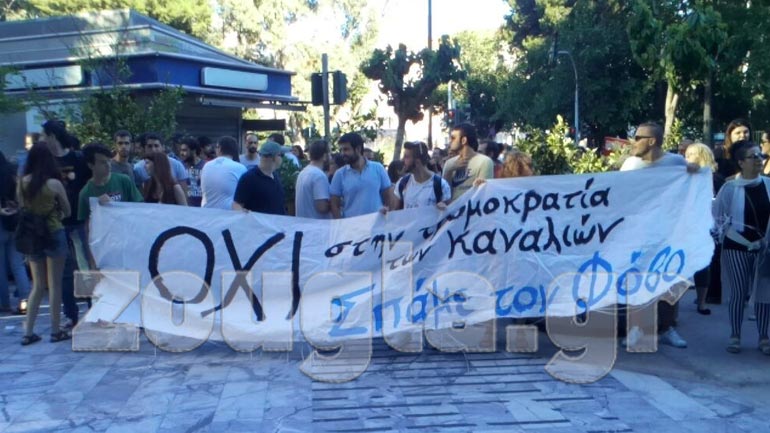 Συγκέντρωση στη Λεωφόρο Μεσογείων, έξω από τις εγκαταστάσεις του τηλεοπτικού σταθμού Mega, πραγματοποιούν διάφορες συλλογικότητες με σύνθημα: «Σπάμε τον φόβο, την τρομοκρατία των καναλιών», με αφορμή τις πολιτικές συζητήσεις εν όψει του δημοψηφίσματος.