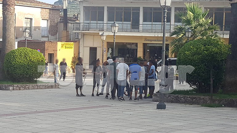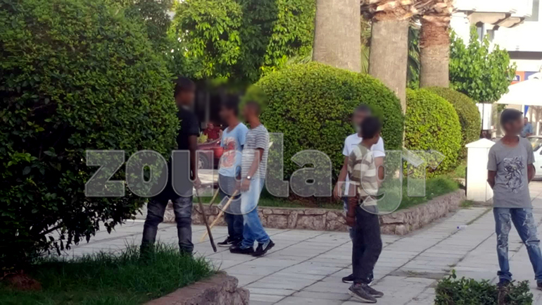 Ομάδα Ρομά 30 περίπου ατόμων που κρατούν ξύλα έφυγαν το απόγευμα της Τρίτης από τον καταυλισμό των Ρομά και κατευθύνθηκαν στην κεντρική πλατεία της πόλης.