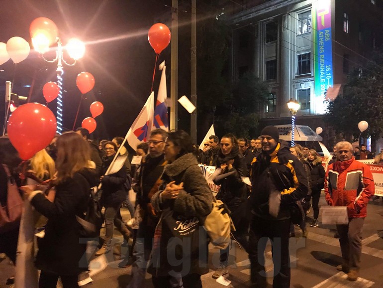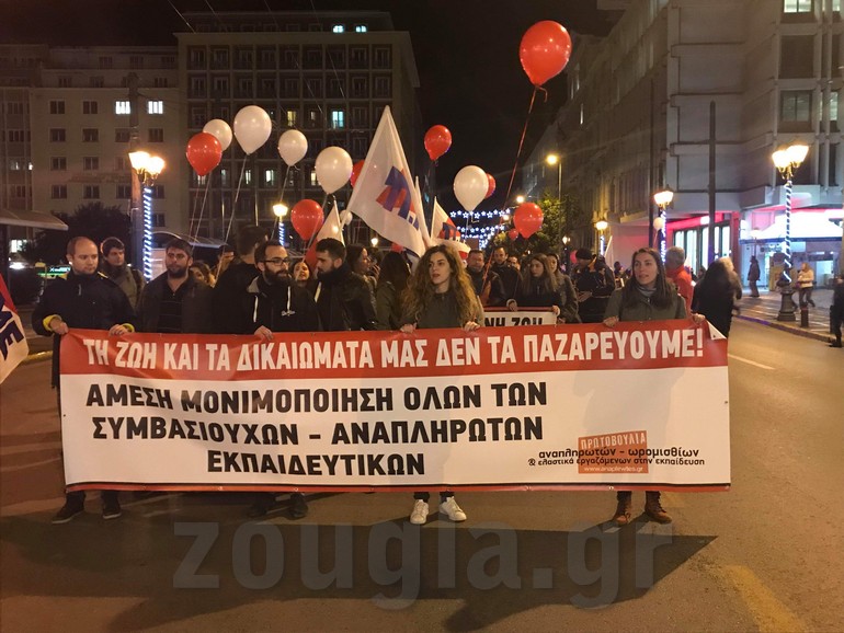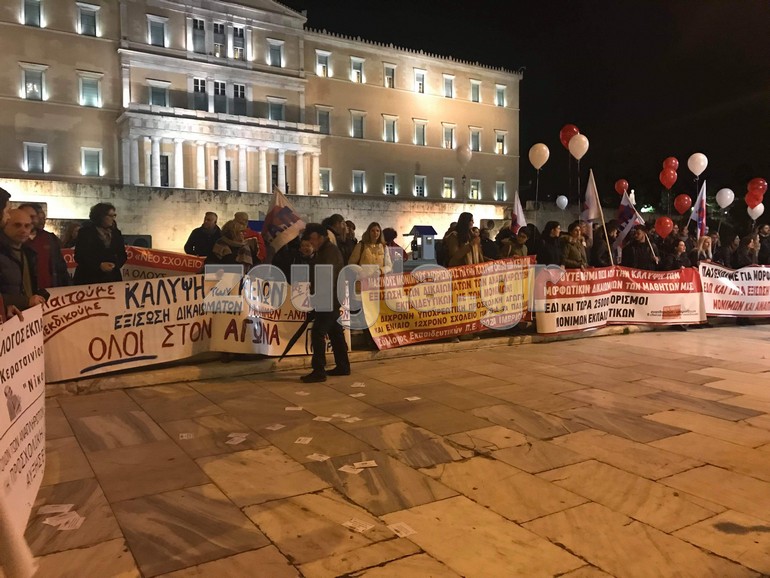 Λίγο μετά τις 19.00 οι αναπληρωτές ξεκίνησαν πορεία προς τη Βουλή όπου και έφτασαν λίγα λεπτά αργότερα.