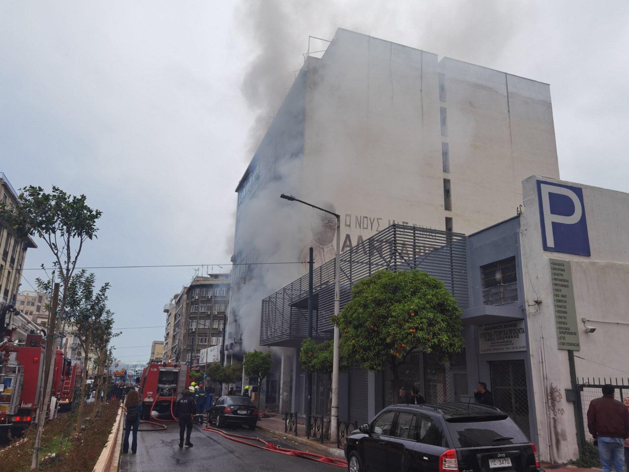 Ανοίγουν τα παράθυρα αλλά έξω από το κτήριο ο καπνός είναι ακόμη περισσότερος. Το άνοιγμα των παραθύρων τραβάει κι άλλο καπνό μέσα στα γραφεία…..