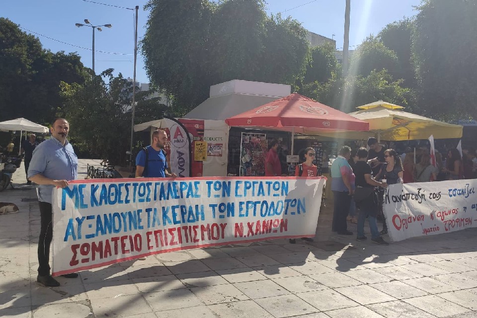 Στις 10 το πρωί, σωματεία από πολλούς χώρους και κλάδους εργασίας συγκεντρώθηκαν στο κέντρο της πόλης, διατρανώνοντας τα αιτήματά τους και εκφράζοντας την αντίθεσή τους με το νέο νομοσχέδιο που ετοιμάζει η κυβέρνηση και τις παρεμβάσεις στον εργασιακό, ασφαλιστικό και συνδικαλιστικό νόμο.