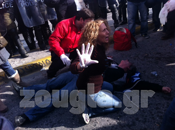 Με υπέρμετρο ζήλο οι αστυνομικές δυνάμεις, λίγο πριν τις 15:00 το μεσημέρι, απομάκρυναν βίαια, τους διαδηλωτές. Στο σημείο έφτασε ασθενοφόρο και παρέλαβε τον τραυματία. Στο σημείο βρίσκονται εκατοντάδες πολίτες.