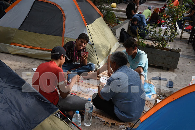 Την ίδια στιγμή, απλοί πολίτες μοίρασαν ρούχα και παπούτσια σε άνδρες, γυναίκες και παιδιά μετανάστες που παραμένουν στην πλατεία Βικτωρίας, μέχρις ότου καταφέρουν να μεταβούν στα σύνορα και από εκεί στη χώρα προορισμού τους.