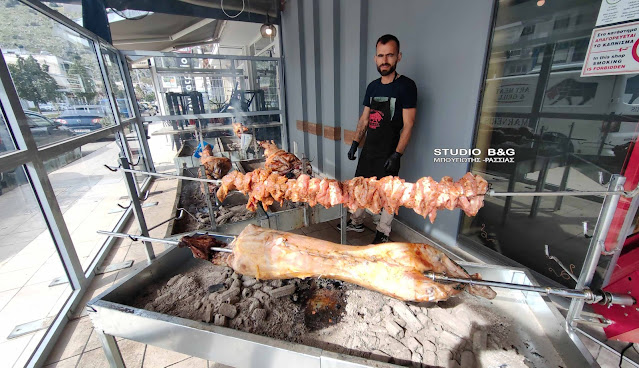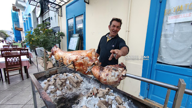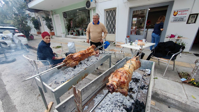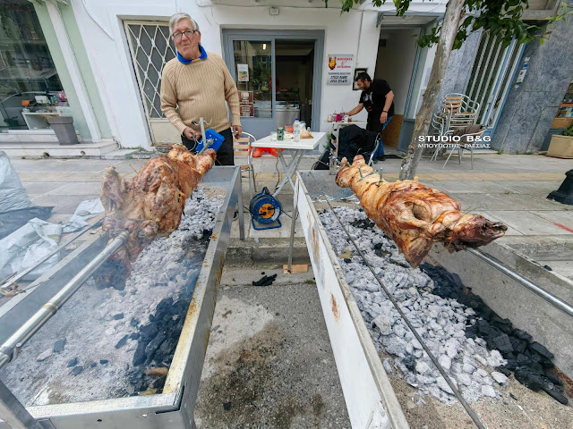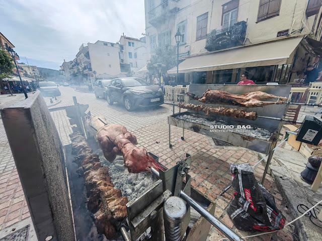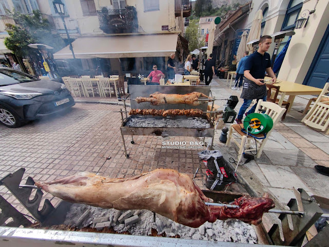Από νωρίς το πρωί στα καταστήματα εστίασης στο Ναύπλιο έγιναν οι απαραίτητες προετοιμασίες και οι σούβλες ξεκίνησαν. Ακόμα και μέσα στο κέντρο της παλαιάς πόλης του Ναυπλίου πολλά καταστήματα σούβλιζαν προκαλώντας τα βλέμματα των περαστικών.
